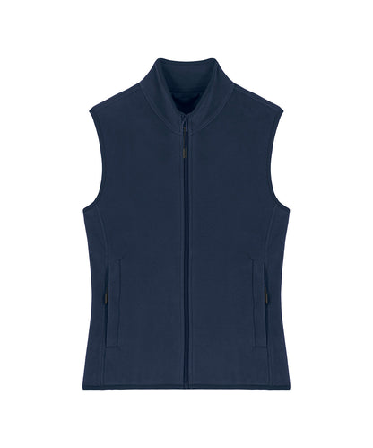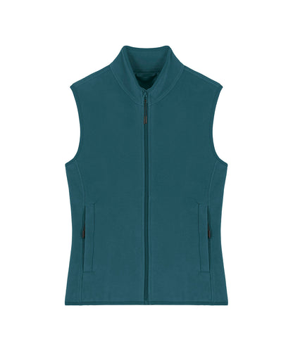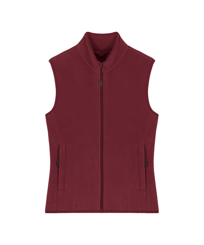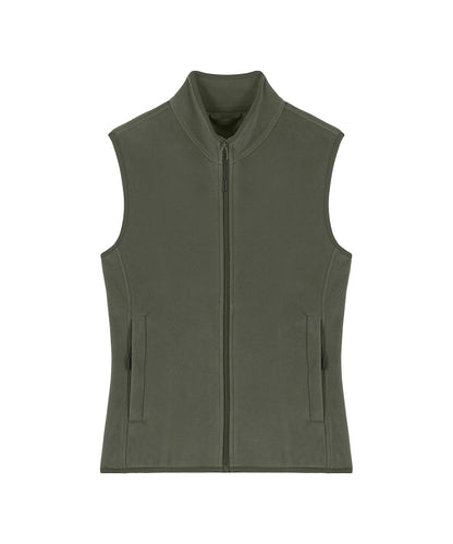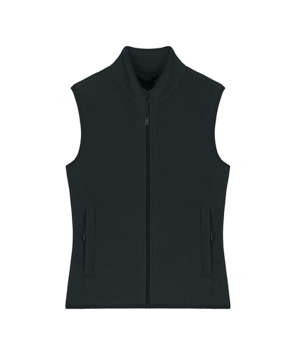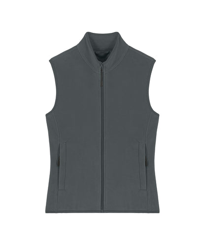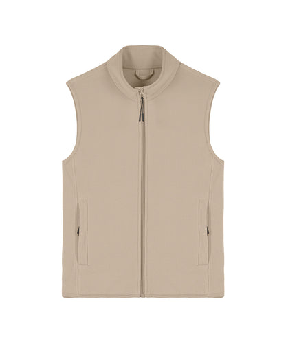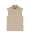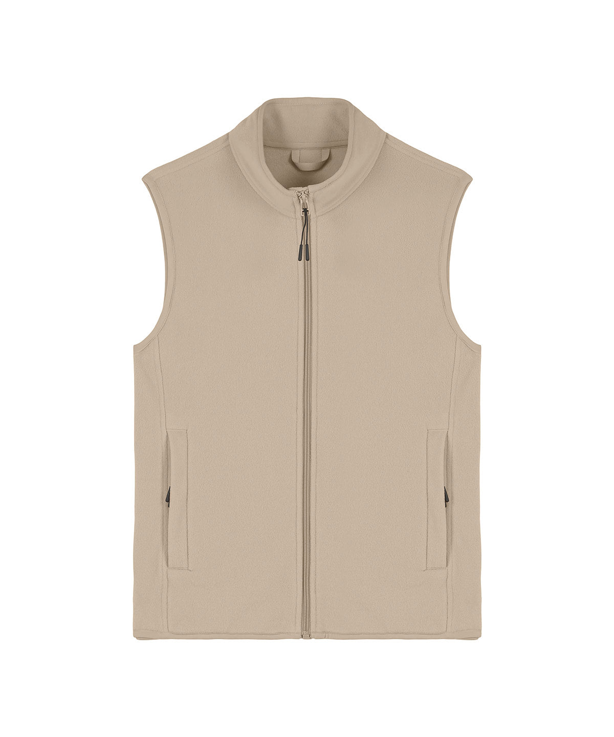 Ærmeløs. Elastisk binding ved hals, ærmegab og forneden. Grosgrain løkke på indersiden af halsen. Nylon lynlås med metal lynlås og blonde lukning. Børstet stof med antipilling behandling på inder- og ydersiden. Sidelommer foran med lynlås. Tape på indersiden af halsen i genanvendt polyester.