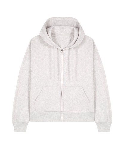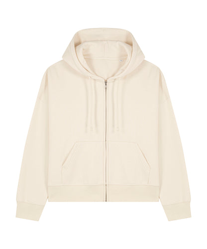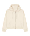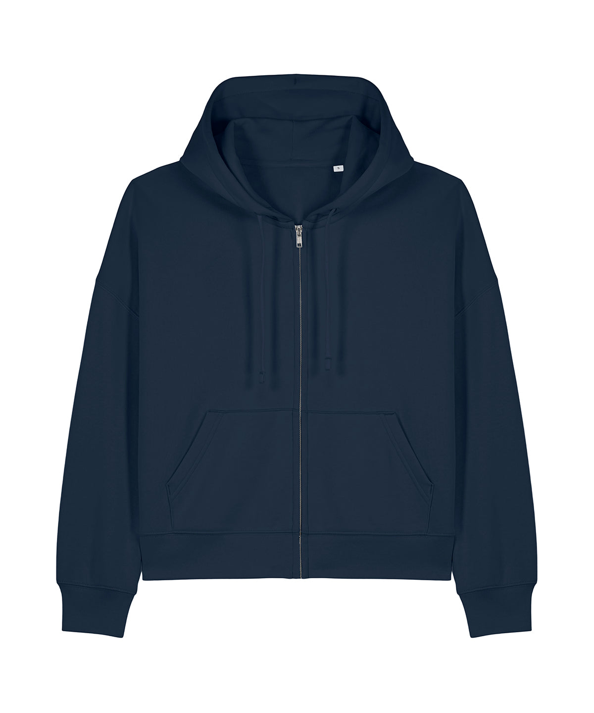 Sæt ærmer. Droppede skuldre. Hætte med dobbeltlag i selvvævet materiale. Flad snøring i matchende kropsfarve. Broderet øje. Beklædt metal lynlås midt foran. 1x1 ribkant ved ærmeafslutning og forneden. To-nålssøm på alle sømme. Indvendigt grosgrain bånd bag i nakken. Halvmåne i stof bag i nakken.