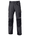 Ergonomisk pasform. YKK lynlås i gylp. Bagpå linning med stretch i Tencate European stof. Cordura forstærkede lommer. Lommer til knæbeskyttere i Cordura. Beskyttelse i bunden af Cordura. Reflekterende detaljer. Når de bruges i kombination med Dickies SA70 Knæpude, opfylder bukserne EN ISO 13688:2013 og EN 14404:2004+A1:2010.