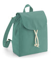 Indeholder 100% OCS certificeret økologisk bomuld, certificeret af Control Union CU811033. Premium, kraftigt stof. Foldeklap med sikker trykknap. Lukkes med snørebånd. Justerbare skulderstropper i selvklæbende stof. Håndtag med greb.