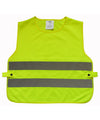 Overholder EN150:1999. 100% polyesterstof med sideelastik og trykknapper. To 50 mm brede reflekterende strimler rundt om kroppen. Stort område foran og bagpå til dekoration.