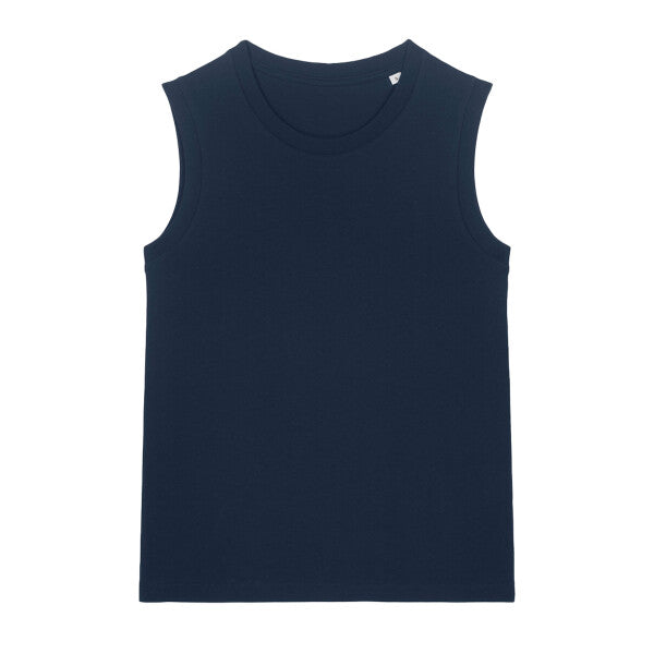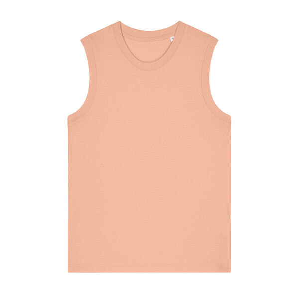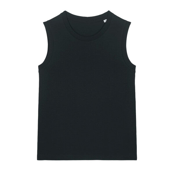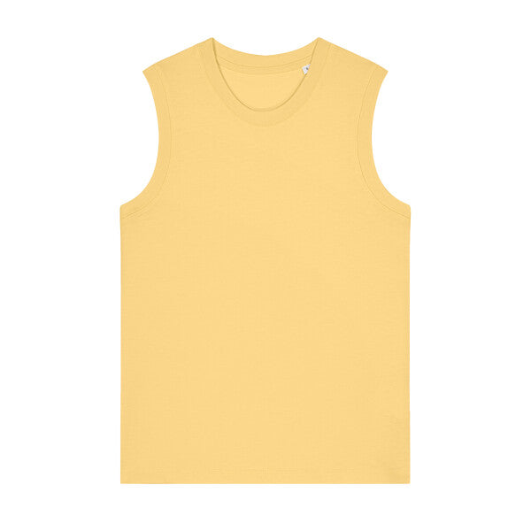 Linnet är ärmlöst med 1x1 ribbad kant vid ärmhål och hals, vilket ger en hållbar och mjuk känsla. Den självtygsförstärkta nacktejpen och dubbelstickade sömmar i fållen ger ett stilrent intryck och extra hållbarhet – perfekt för både tryck och vardagsanvändning.