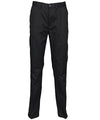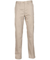 Platt fram, raka ben. Knäppt bakficka. Färgade för att matcha knapparna. Främre sidofickor. Bälteshällor. BSCI-certifierad.