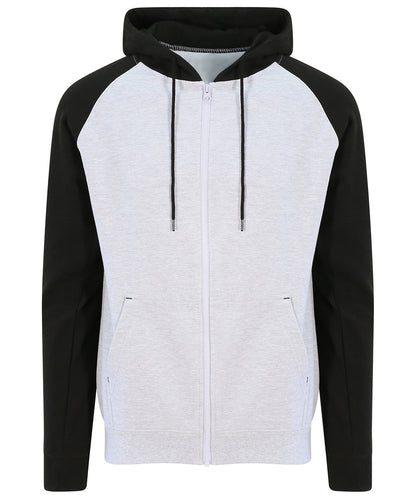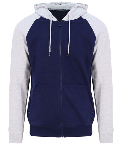 Sömnad med två nålar. Kontrasterande raglanärmar. Huva i dubbelt tyg. Dragkedja i YKK-plast. Kontrastfärgad snörning i platt spets. Spilt känguruficka. Ribbade muddar i ärmslut och nederkant. Mjuk bomullsväv ger perfekt tryckyta. Enkel etikett som kan rivas ut gör den perfekt för rebranding. Borstad fleece på insidan. WRAP-certifierad. SEDEX-certifierad. Vegan-certifierad.