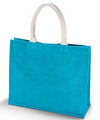 Strandväska/shopper i juteväv, handtag i bomull, förslutning med rivknäppning. Tillbehören uppfyller Reach-standarden. BSCI-certifierad. SEDEX-certifierad.