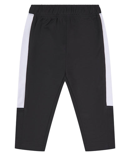 Träningsbyxor för barn med kontrastpaneler längs ytterbenen. Resår i midjan. Slät fåll. Certifierad enligt BSCI.