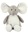Elefant i mjuk plysch. Kontrastfärgade krämfärgade inneröron, fötter och frontpanel. Sydda ögon. Dragkedja på undersidan för direkt åtkomst till magen för dekoration. Löstagbar innerstoppning. Dragkedja vid båda öronen för dekoration på öronen. Kan broderas eller tryckas med sublimeringstryck. Uppfyller EN71, europeiska regler för leksakers säkerhet. Ta bort alla hängetiketter och deras fästanordningar innan du ger dessa föremål till ett barn. Lämplig för barn i alla åldrar. BSCI-certifierad. SEDEX-certifierad.