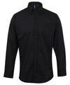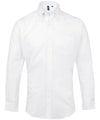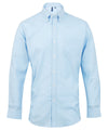 Långärmad Oxford-skjorta för män med rynkfri finish för ett smart och professionellt utseende. Krage med knappar. Öppen bröstficka med gering på vänster sida. Långa ärmar med manschetter som knäpps med knappar och som även passar manschettknappar. Veck baktill. Bomullsrikt Oxford-tyg. Halv figursydd passform. Tillverkad av OEKO-TEX Standard 100-tyg. WRAP-certifierad. BSCI-certifierad. Reach-certifierad. SEDEX-certifierad.