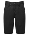 Dessa chinoshorts för herrar är baserade på de populära chinojeansen och har en täckt gylf med dragkedja och knapp i midjan. Det finns öglor i midjebandet för att underlätta ett bälte, två sidofickor med nitdetaljer och två patchfickor på baksidan. Byxorna har en dubbelt uppvikt fåll och är ett utmärkt alternativ för de varmare månaderna och ger en mer avslappnad och lekfull klädsel för företag. En aning elastan i tyget ger en viss stretch för maximal komfort.