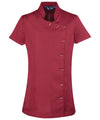 Skönhets- och spa-tunika med mandarinkrage. Asymmetrisk knappknäppning framtill med åtta stapelformade knappar. Kort ärm. Slitsar i sidorna. Bakre veck för ökad rörelsefrihet. Prinsess-sömmar. Lättskött. BSCI-certifierad. Reach-certifierad.