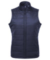 Vadderad väst med genomgående dragkedja för damer med horisontella sömmar som bildar bafflar som ger en jämn fördelning av isoleringen. Täckt dragkedja med hakskydd och dragkedjeskydd på insidan. Försedd med kadettkrage. Två sidofickor med dragkedja och en öppen innerficka för praktisk förvaring. Full brodyråtkomst till hela kroppsvärmaren genom en invändig dragkedja i fodret. Lätt och kan enkelt vikas ihop i sin egen packpåse. Certifierad enligt amfori BSCI.